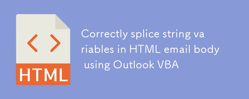 Outlook VBA を使用して HTML 電子メール本文内の文字列変数を正しく結合する