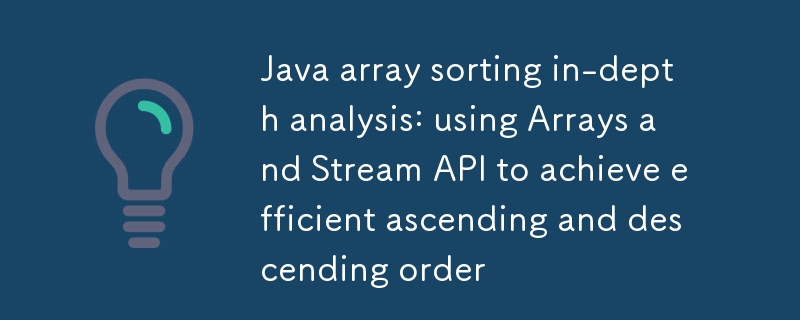 コース紹介:この記事では、Java で整数配列を効率的にソートする方法について詳しく説明します。まず、Arrays.sort() を使用して昇順ソートを実装する方法を説明し、次に Java 8 Stream API を使用して降順ソートを実装する手法 (プリミティブ型とラップ型の間の変換を含む) について詳しく説明します。この記事では、開発者が Java 配列ソートのベスト プラクティスを習得できるようにすることを目的として、完全なコード例とメモを提供します。