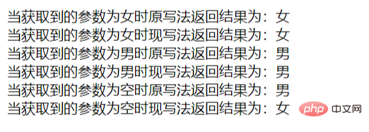"; echo '当获取到的参数为男时原写法返回结果为:'.$sex2."