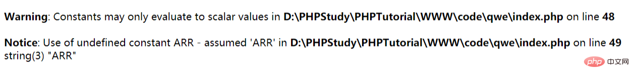 define('ARR',['a','b']); echo ARR[1];// a