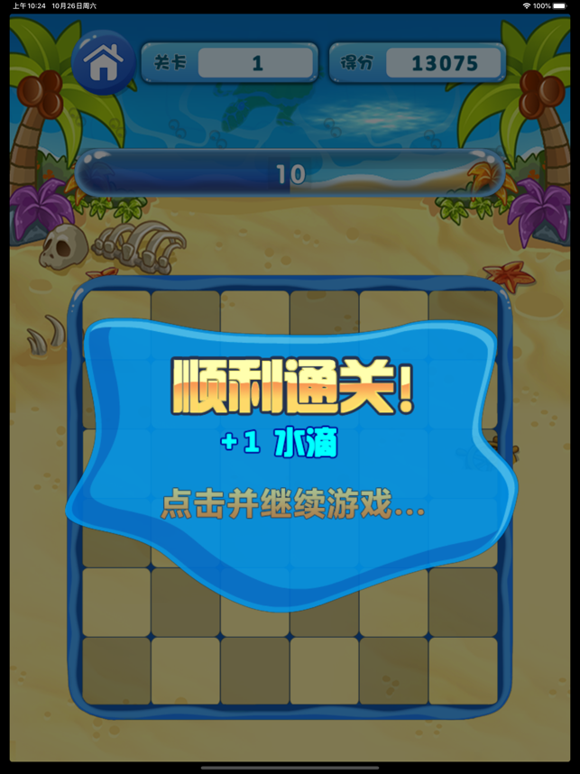 - 使游戏界面上的所有水滴消失即可进入下一关。
